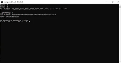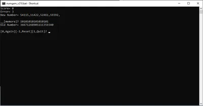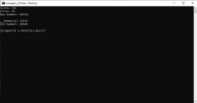 [If you don't type 1 to exit, your saved progress is lost. This game is playable while doing something else or closing the program (yes, that sounds odd).] #other #batch #dos #memory