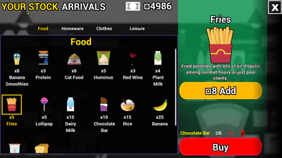 Yes, you own a Thrift Shop! Clients visit daily to purchase their preferred products. To keep your business profitable, you must monitor your prices and the demand for your products.