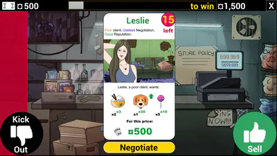 Manage your Thrift Shop. Sell a hodgepodge of merch to picky customers. Set prices, negotiate with clients, and decline suspicious offers. Order popular stock, fight off shoplifters, and manage your reputation - gain or lose it based on your choices!