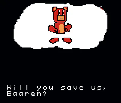 In a world where animals lived peacefully, a war broke out between bears and bees. Bees, by the new decree of Queen Beatrice, began to produce purple honey, which made many (with the exception of bears) go crazy. However, this honey did not work on bears, so the bees decided to raid the Bear Village and lock all its inhabitants in cages — otherwise, they killed some. However, the only bear that managed to hide on the outskirts of the village turned out to be Baaren, and now he needs to save the kingdom from the purple power.