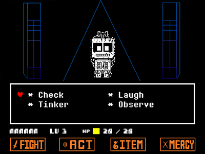 An Undertale battle based off the scrapped NPC, Robot 98. Being of my own interpretation of what a fight would look like, as a semi-CORE secretive boss before MTT EX.