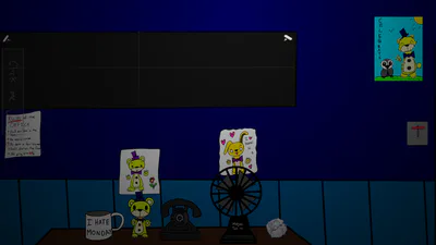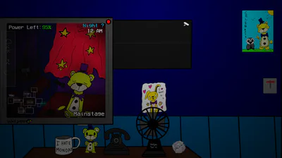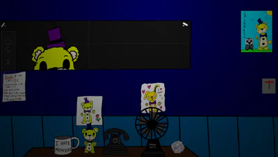 this game is an unfunny fnaf fangame where, fredboi (knock off of fredbear) tries to spook you along with his friend hooty the owl.