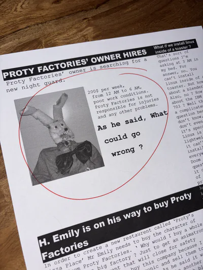 You're just a random person who needs money. You take a job but there's something strange with. You're not alone. Who is this ? Where am I ? When it will happen ? Why ?