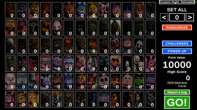 A game inspired in Ultimate Custom Night by Scott Cawthon, this version provides 78 animatronics from the series (Fnaf 1 - FFPS and some extra characters).