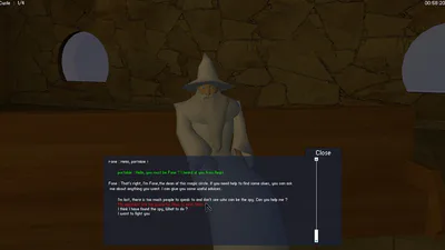 The main goal of the game is to find a spy inflitrated among a group of wizard apprentices. You can examine objects, take them, speak to NPC, hire them in your team, etc. The game put an emphasis on the dialog system, where your questions / answer have consequence over NPC behaviour. Every NPC will have it own motivation, so you could totally end up with enemies in your team without knowing it.