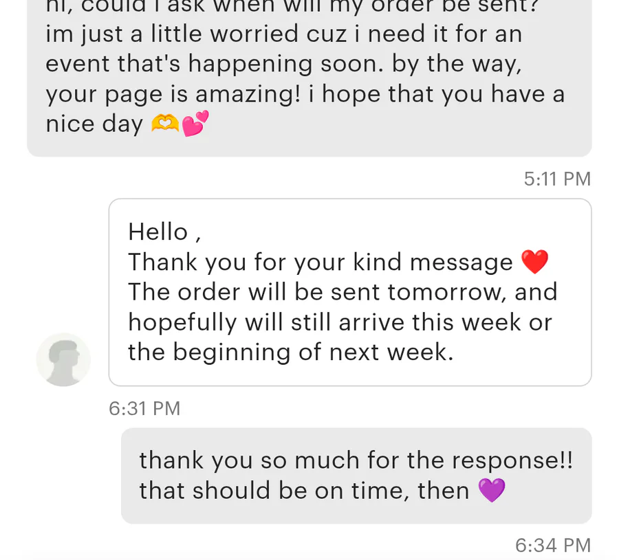 how nice!! love the person who i ordered the clancy stole from, very kind and I'll be able to get it before my halloween party ✨