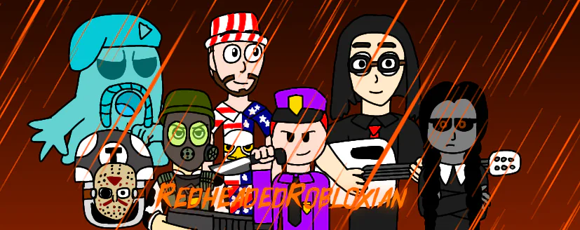 Me dressed as William Afton, Tong Yi is as Adrian Shephard, Timshroom is wearing Jason's mask, GI Tract is from Investigators, Marry Mcsweeney is as Wednesday Addams, Caddicarus is Kyle America, but I don't know what Stevie T's costume is. That's all.