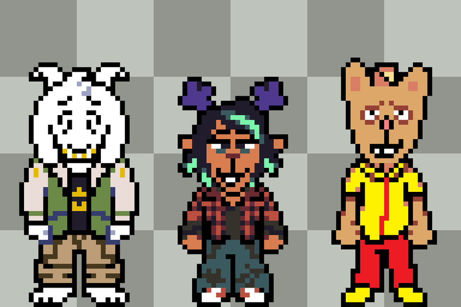 Pizzapants, Asriel, Dess Holiday from Deltarune and Undertale.