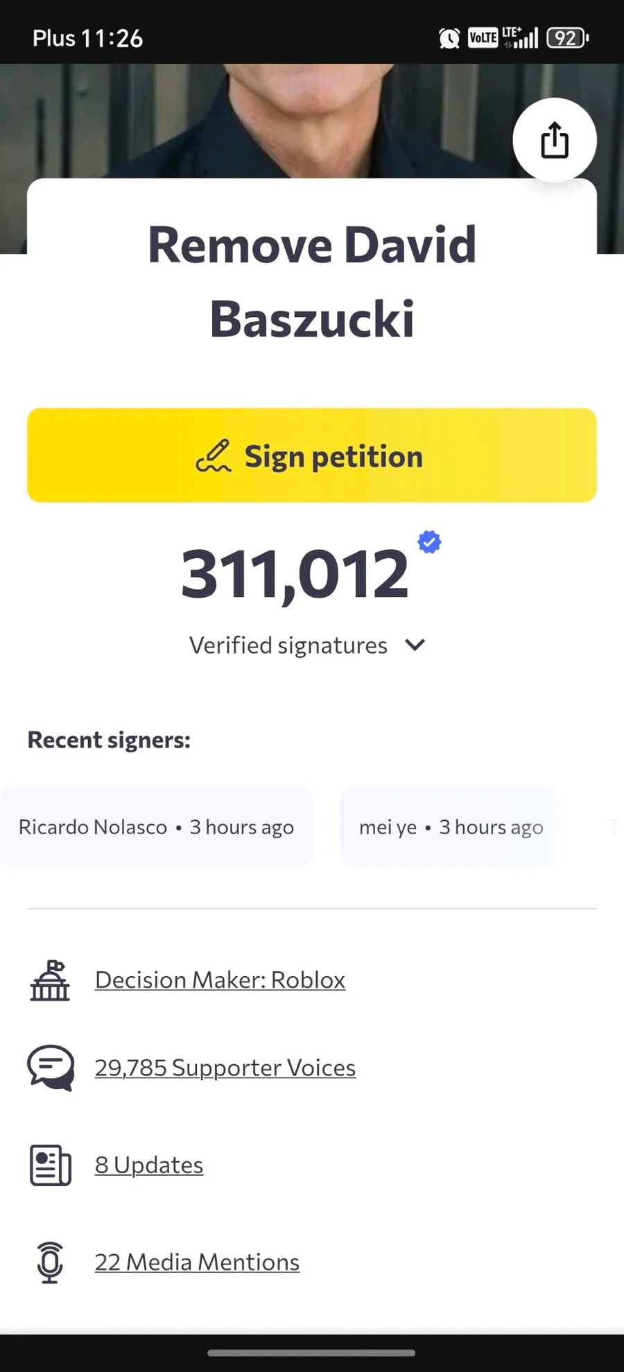Also a update on the petition about removing David Baszucki