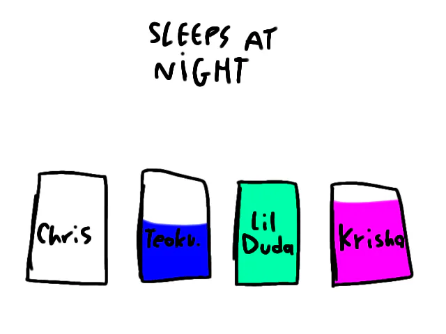 Teoku. stands for Teokuna and Krisha is Krisander/Krisandra's nickname.