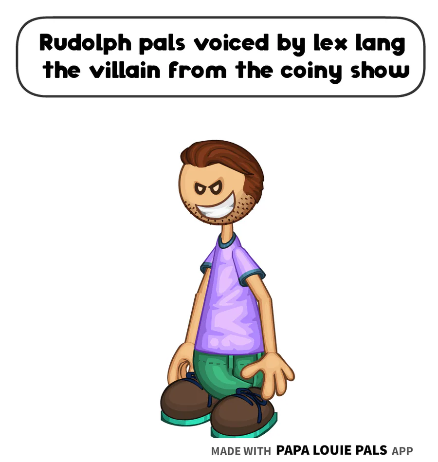 Rudolph pals is voiced by lex lang the villain from the coiny show