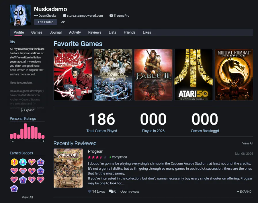 Taking another day off for the first time in a minute. The sun outside is real nice, and i don't feel like working for a change. I'll use the occasion to spam my Backloggd, if you care https://backloggd.com/u/Nuskadamo/