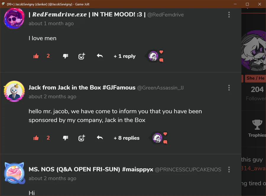 Here's the link https://gamejolt.com/c/Questions-ff4ewr, and feel free