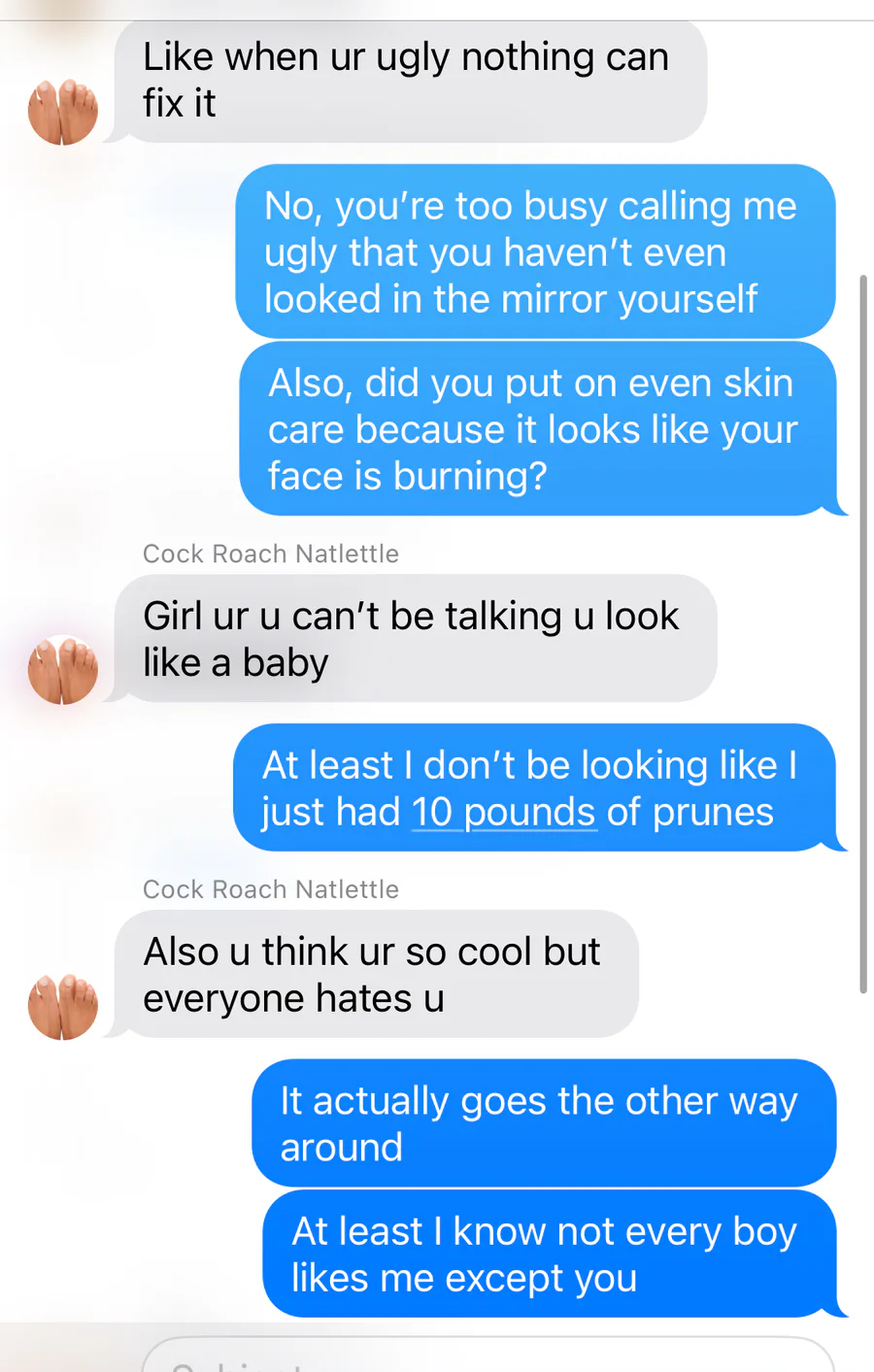 “Your not bad for liking (irl name)”