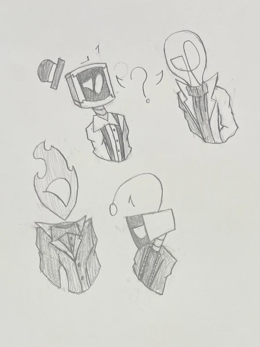 Doodles of the whole team! (Glitch, Otto, Flara, and Dr. Lite)