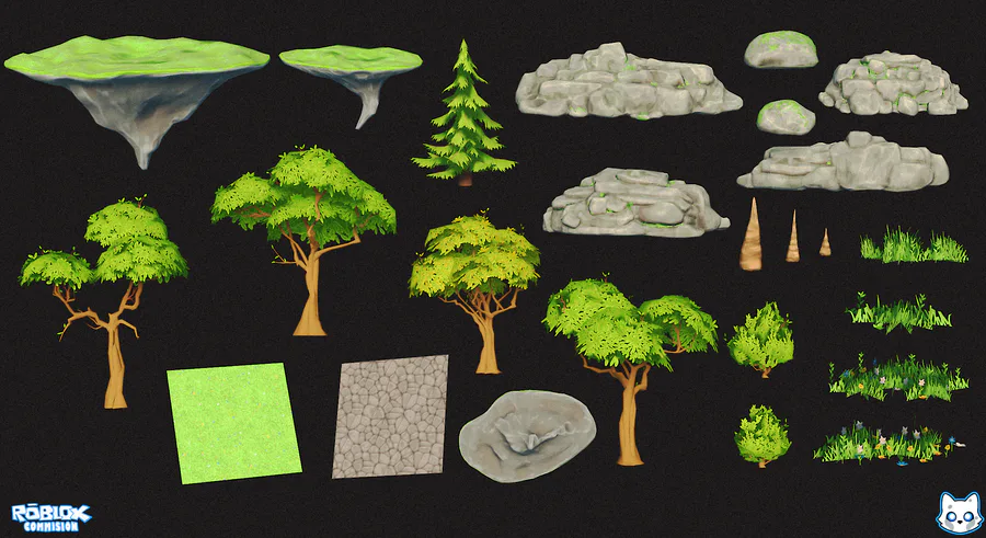 Commision Work for Roblox - Vegetation pack. For 1 flower there are about 100 polygons (maximum), for bushes up to 300. for trees 500. for palm trees - 250