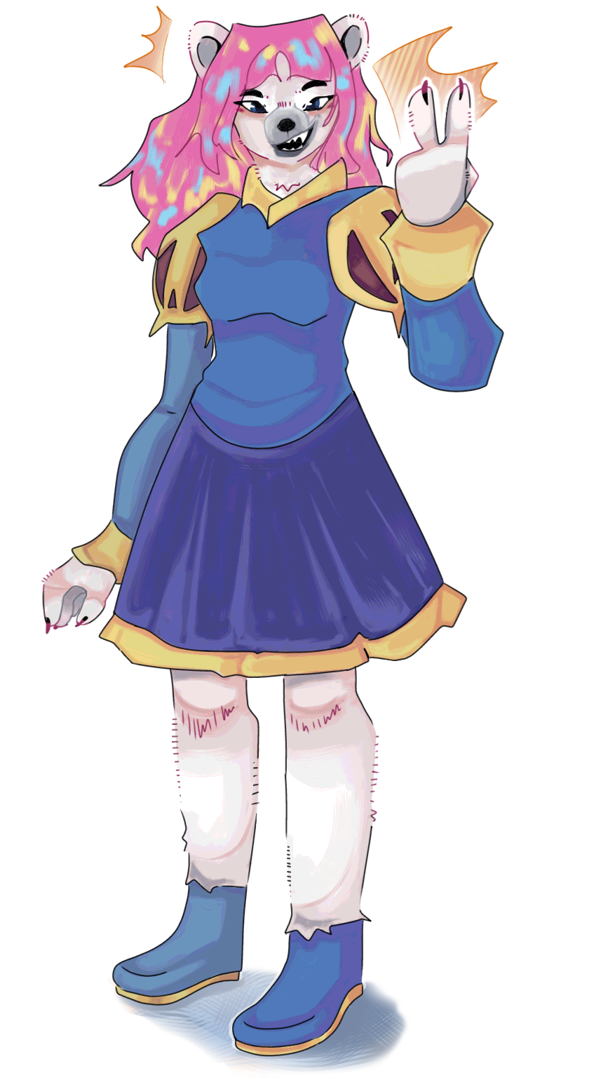 Vicera is from a universe where half the world is populated with magic and all kinds of creatures (dragons, ghouls, merpeople, etc.). It's also divided into different parts, like a medieval area (she's obv from there), a vampire town, some modern and underwater cities, mountains+forests that many creatures rest in and a bunch more.