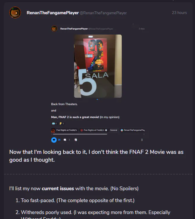 Now that I'm looking back to it, I don't think the FNAF 2 Movie was as good as I thought.
