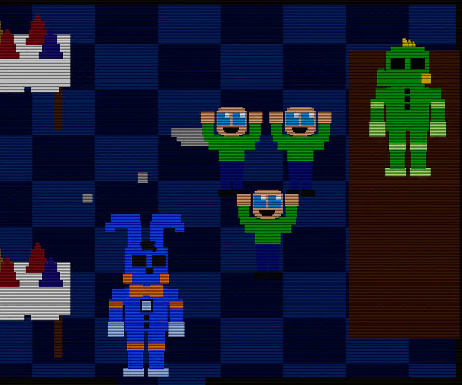 For other things to note, Lightimatronics Co. has finally finished the brand new models of the animatronic characters, complete with their AI even more impressive than their original counterparts. They’re now fitted with a special facial recognition software that’ll help them recognize anyone that’s been in this restaurant before. Not to mention it’ll detect a person who has committed a crime, so that’s neat. Plus, Charlemane who is now renamed to Leo, has gained the puppeteer role with four new character puppets: D, M, E, and L. He is also programmed to entertain the kids in one of the three private party rooms, as a birthday surprise.