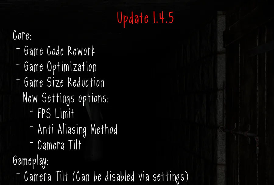 Update 1.4.5 is out! Main changes: - Massive game code rework - Game Optimization - Camera Tilt - Audio Enhancements - Massive UI Enhancements - Massive Bugs Fixing For the full list, check images. Android version will be updated with 1.5.0 update.