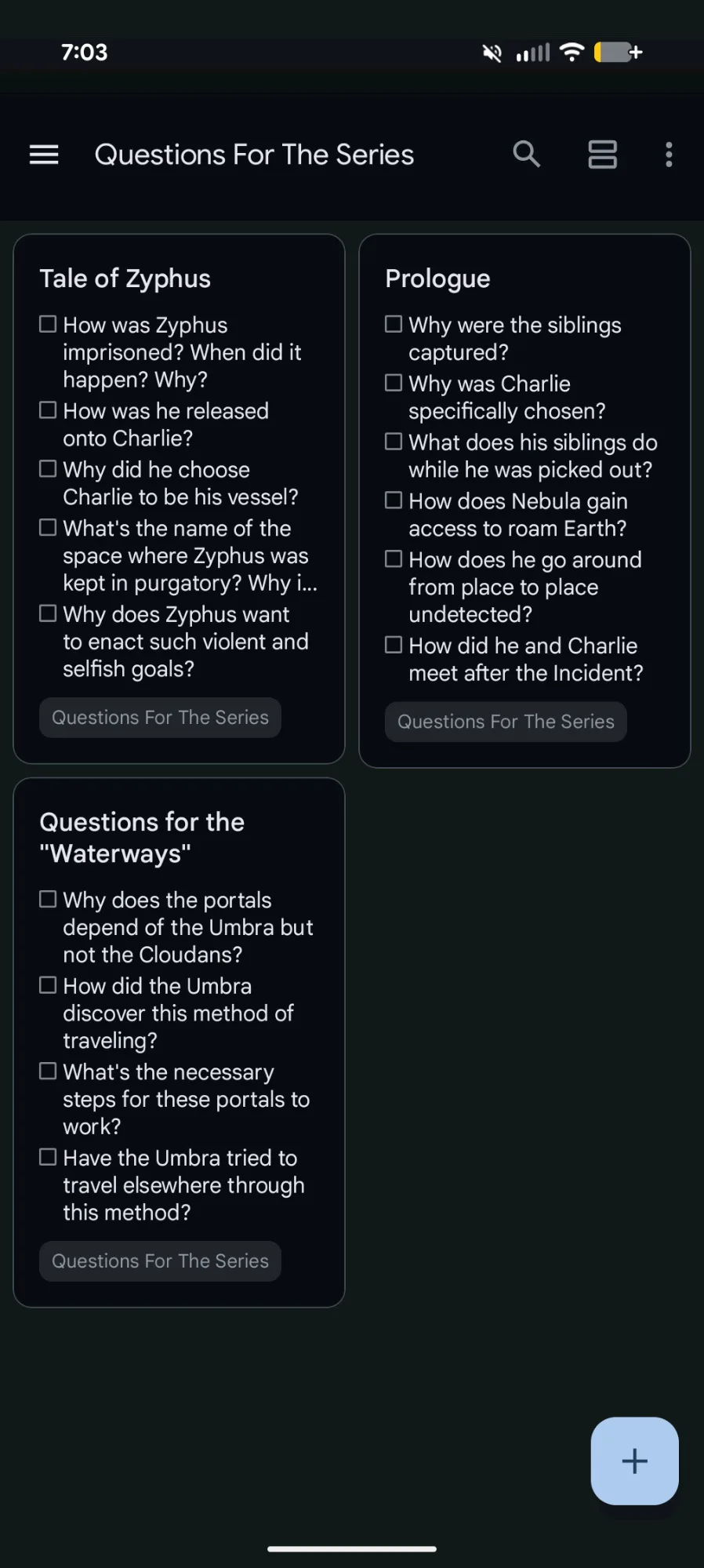 Genuinely important to ask yourself questions for your series. There's a lot of unanswered questions that I have for myself that I have to answer. I think this is a good move on my part, identifying what's still gone unanswered