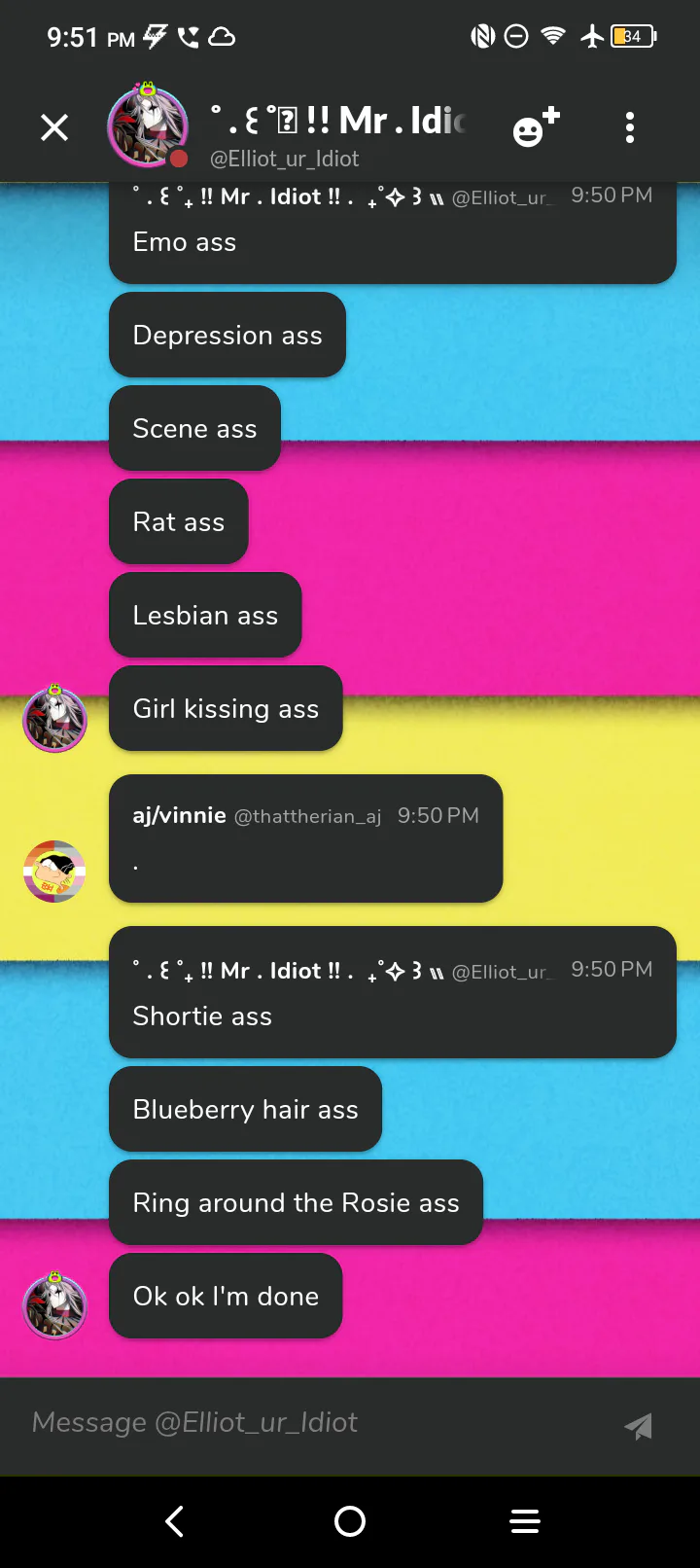 I really adore how the first post is us actually being nice and friendly and the next is me screaming at them💔😝🫶(@Elliot_ur_Idiot