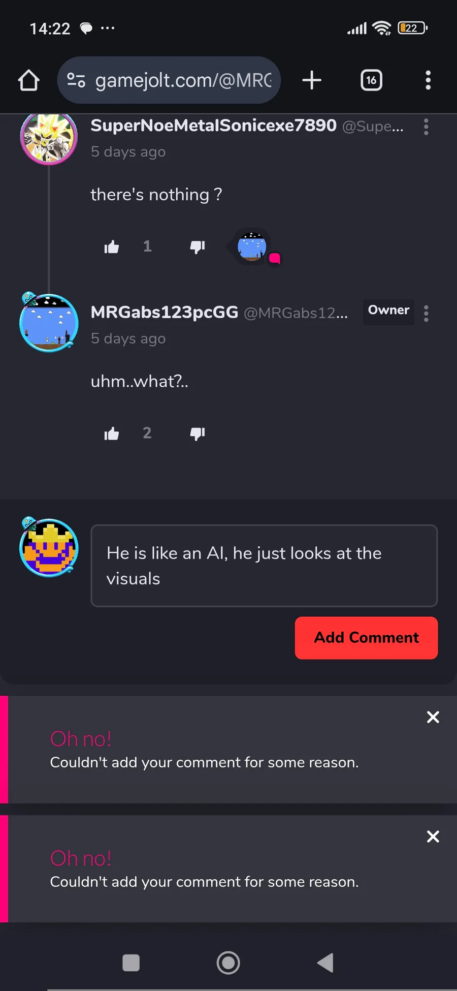 For some reason gamejolt hates @limions