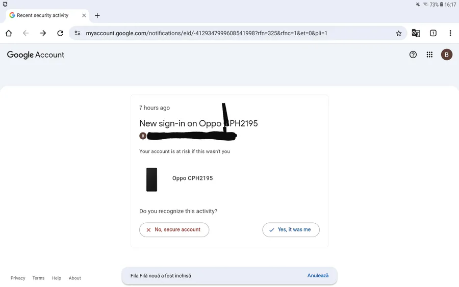 The reason is that my device account has been found and accessed by an anonymous user and I don't trust their interests.
