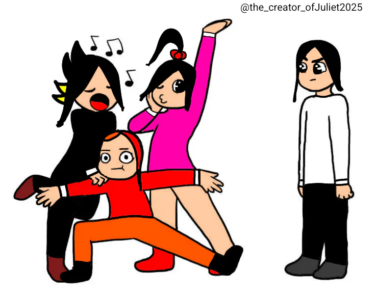 Pamela gets tired of Juliet and her sisters; they have no patience with poor Pamela, while Juliet, Rainbow, and Natalia start singing at the top of their lungs.