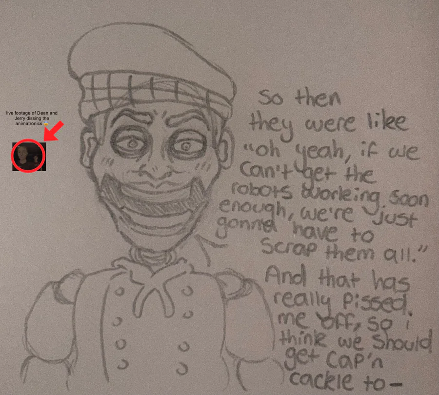 Just a dumb thought that I’ve had for a while, I can imagine Tony literally snitching on Dean and Jerry to the other animatronics after what got said in the third tape lmao