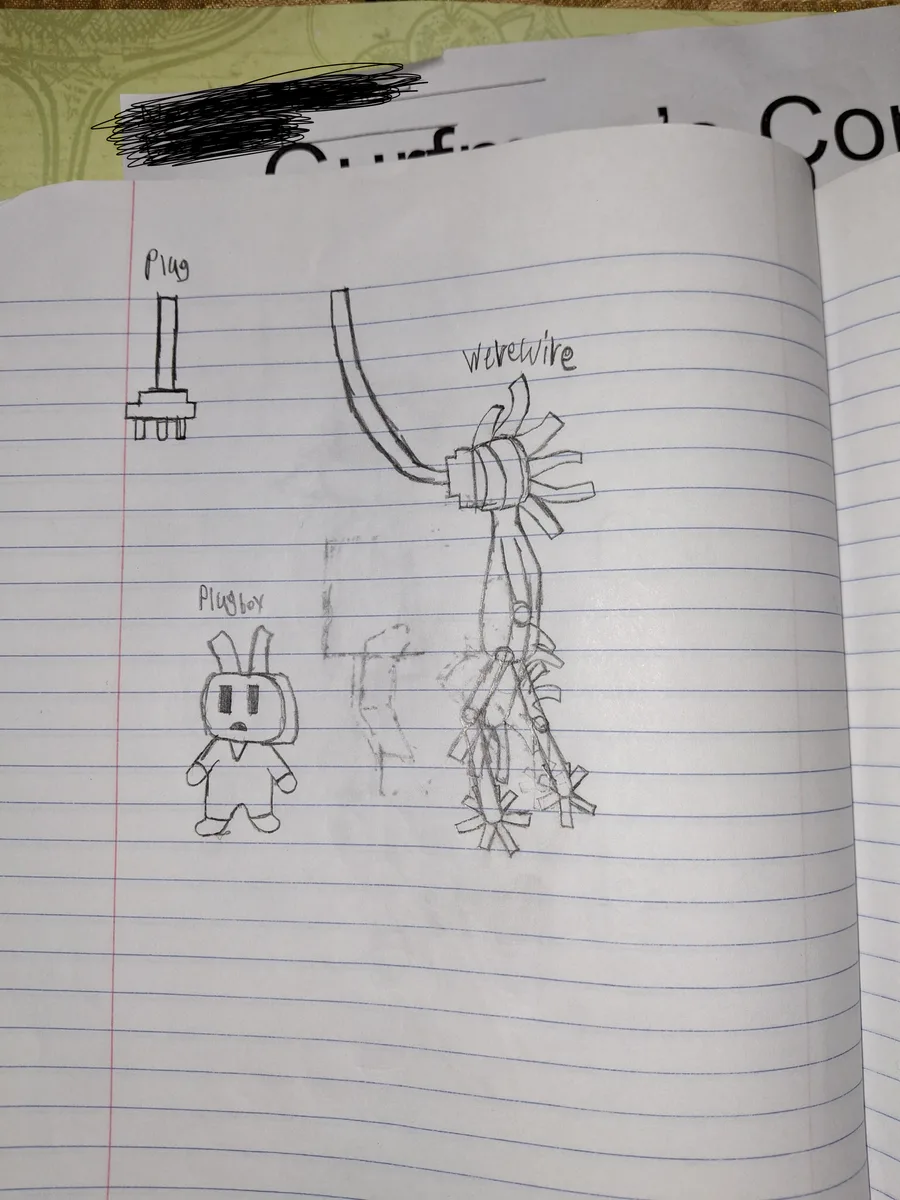 also school art (repost bc I noticed one of them had a family member's name) (flying Ralsei is unfinished btw)