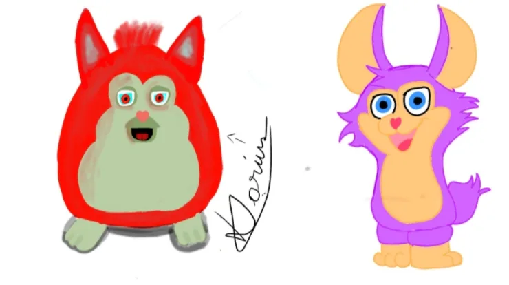 A lil drawing I made for my Ocs (the other one is a lil bunny eraser I found at school)