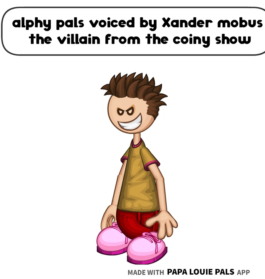 alphy pals is voiced by Xander mobus the villain from the coiny show