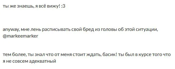 Марк оставил это на странице слива, чтож, это как нож в спину - больно и не приятно. Особенно мне человеку который знал его личность с 2023. Если ты это читаешь марк, то я скажу одно - раньше ты был лучше.