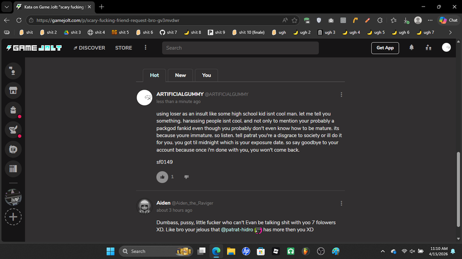 this immature kid called my friend a "loser" like some type of high school kid so i came back to him and told him that it isnt cool to harass people, and said hes got till midnight which is his exposure