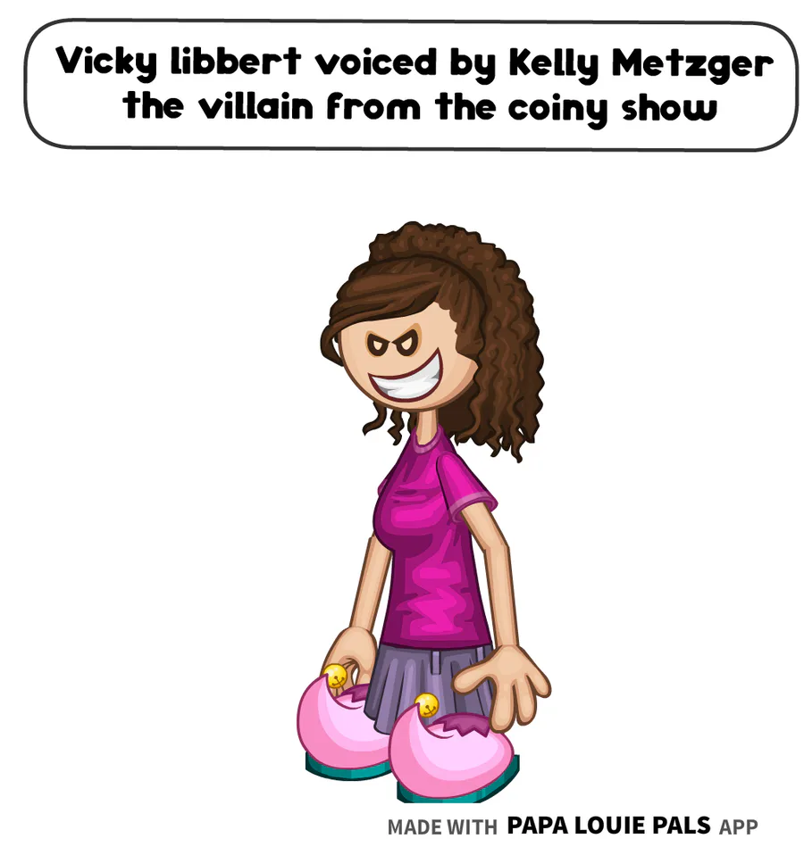 Vicky libbert is voiced by Kelly Metzger the villain from the coiny show