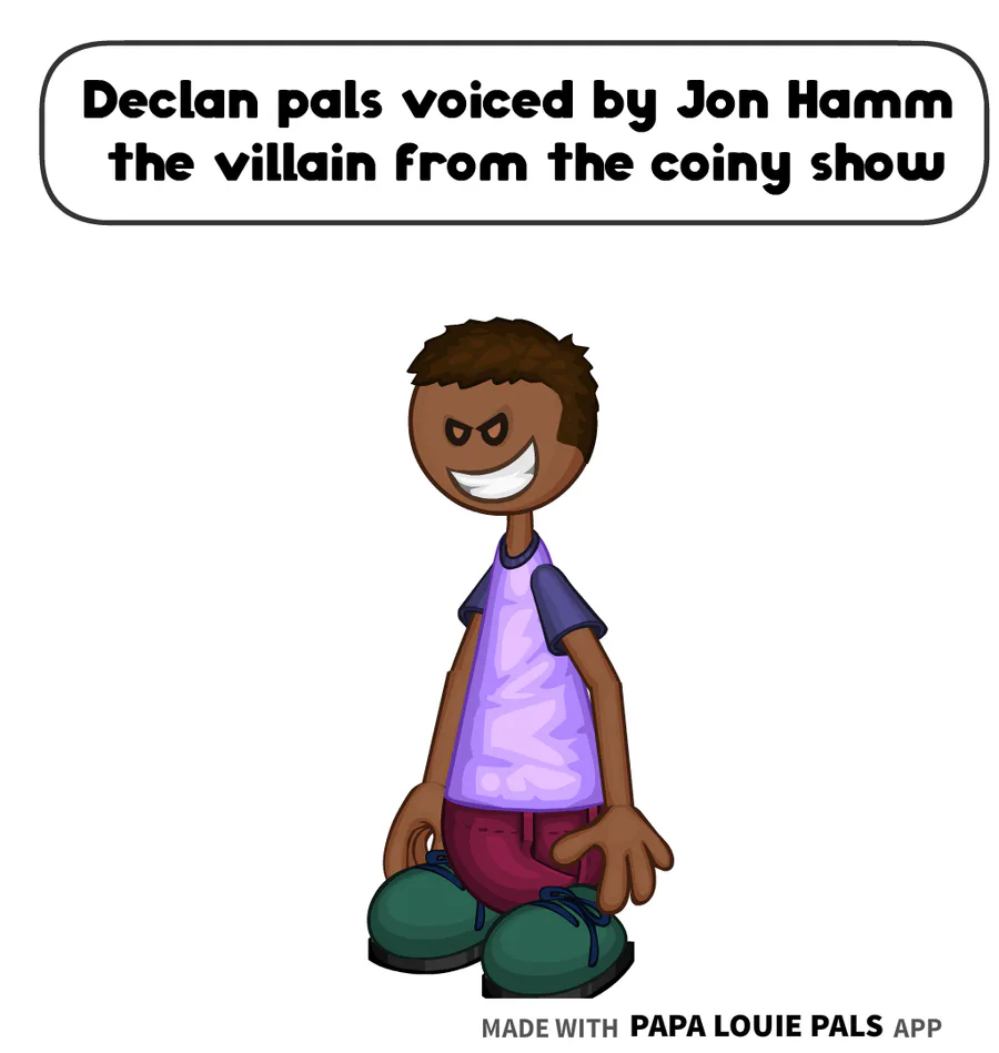 Declan pals is voiced by Jon Hamm the villain from the coiny show