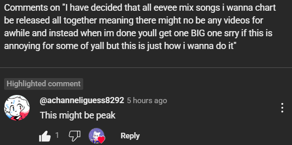 The fact the CREATOR of eevee mixes is telling me my fan mod might be peak is unbelievable to me ngl