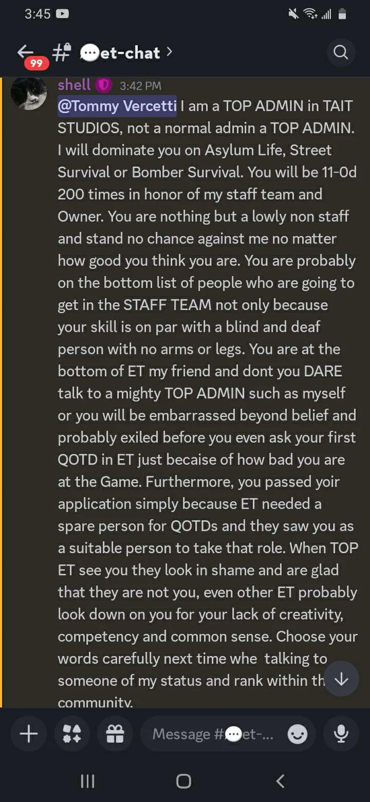 nerd ahh response also shell has such a fucking inflated ego dude its not even FUNNY.