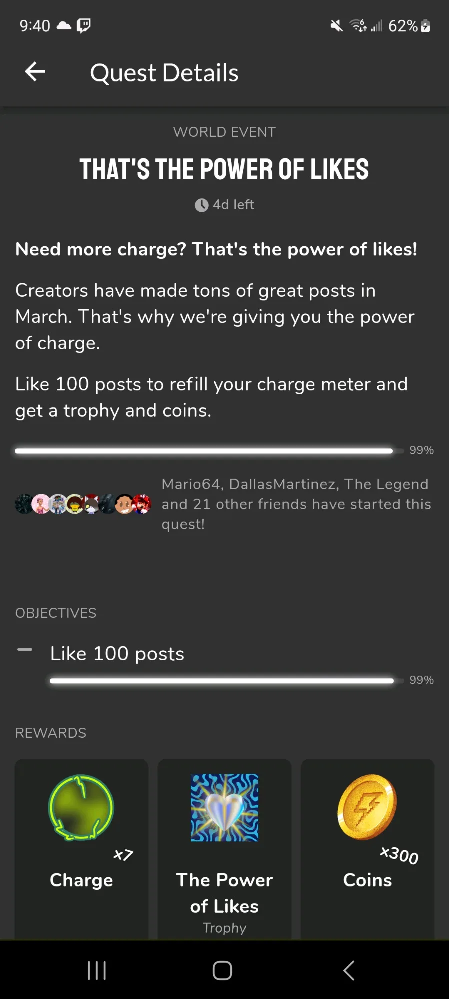 You stay determined to like 100 posts. '1 more'