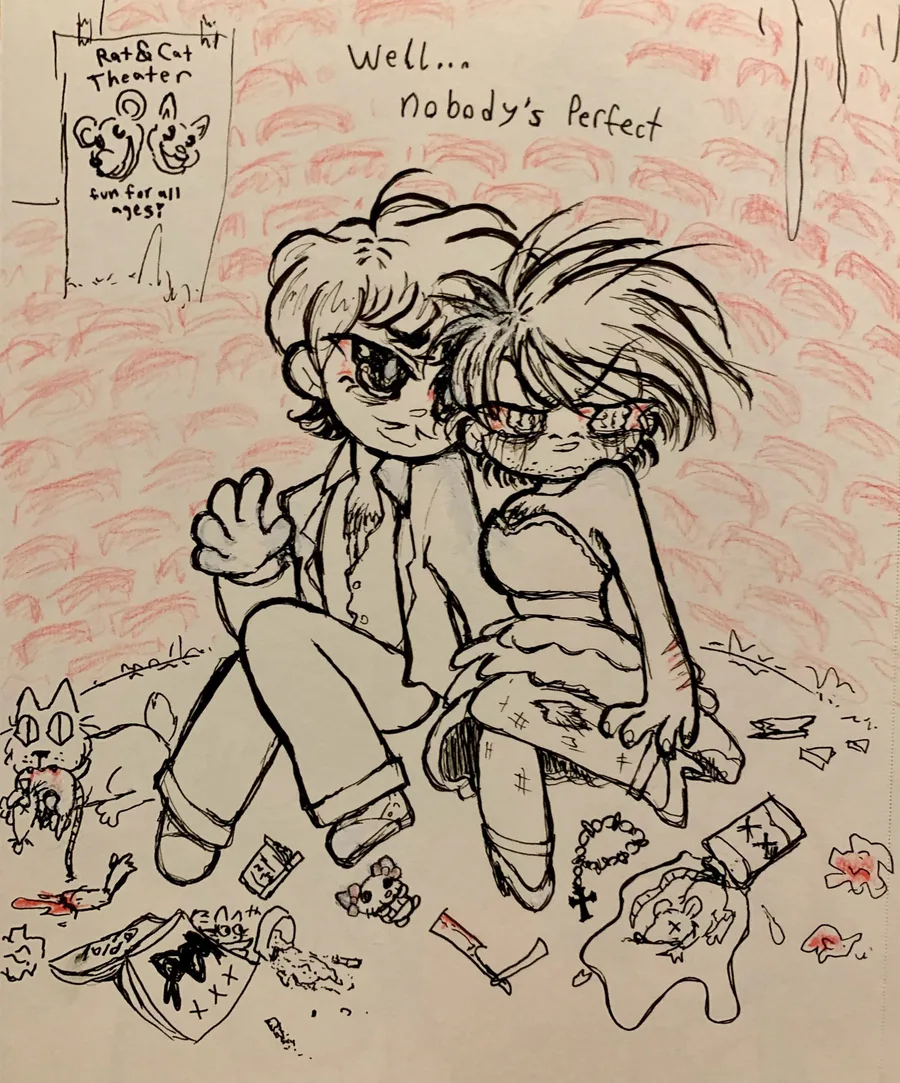 [CW: general adult themes] Maybe got inspired after rereading Pinky and Pepper Forever👉👈 (edit: added a version with a lil color now :3 used a red color pencil for it)