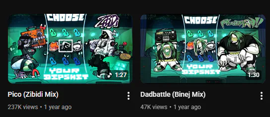 i cant chart DadBattle (Binej Mix) or Pico (Zibidi Mix) because you have to get permission from kiwiquest to use her music