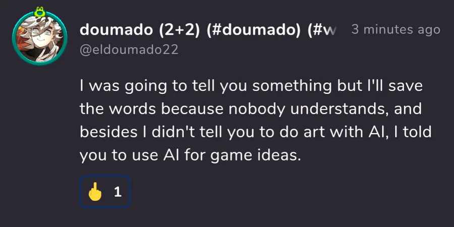 translated that text he thinks idk what its like to use ai (bruh)