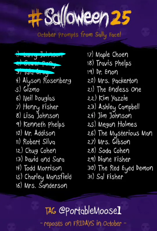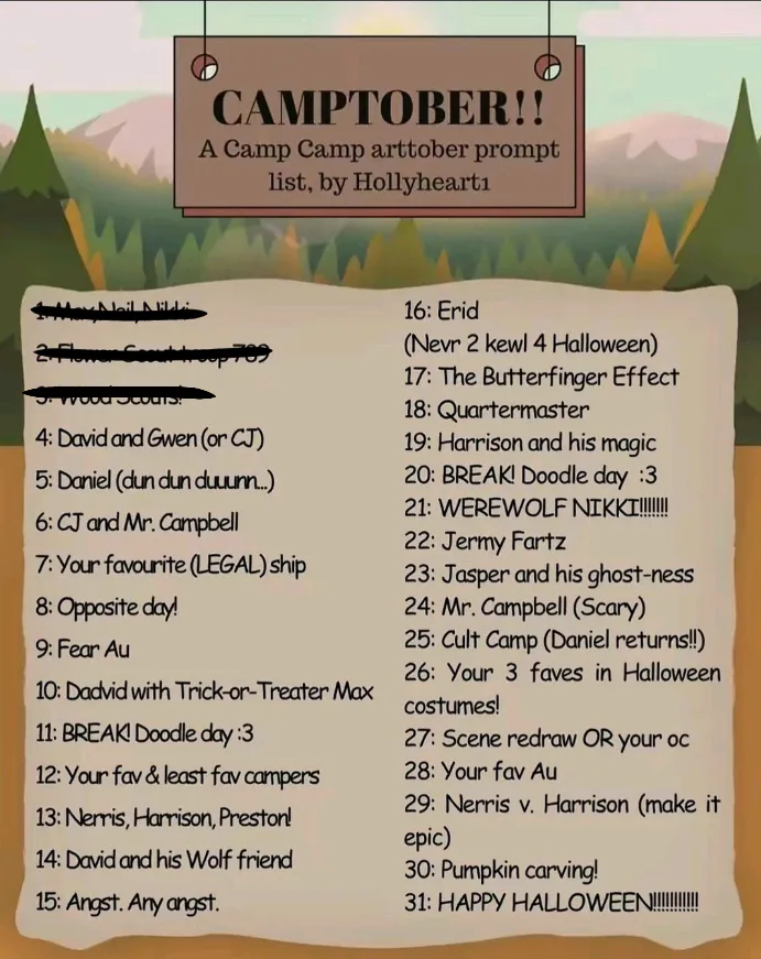 I wasn't gonna do these but I decided why not so CAMPTOBER AND SALLOWEEN!! YAHOO!!
