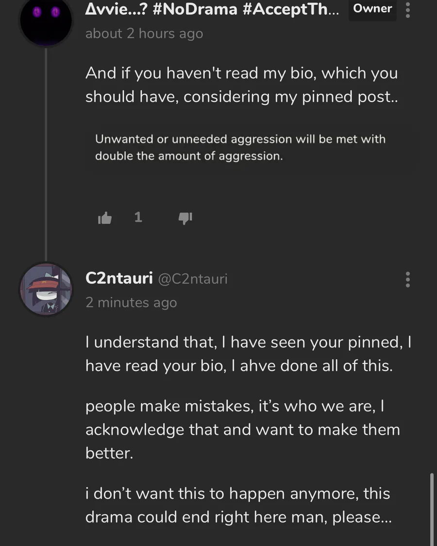 can someone please talk to avvie i just can’t get through to him that im sorry for what I’ve said and done…