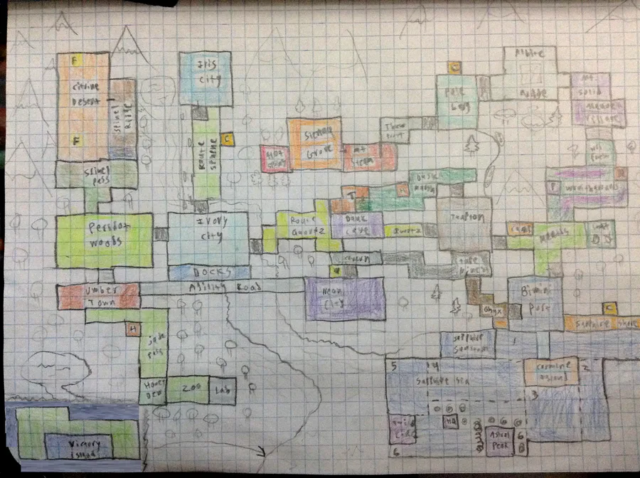 We're decorating scenes around the map with little dioramas like this. A gang of sleeping Frufang can be found in this cozy corner of Dank Cave. (probably resting after some wild party)