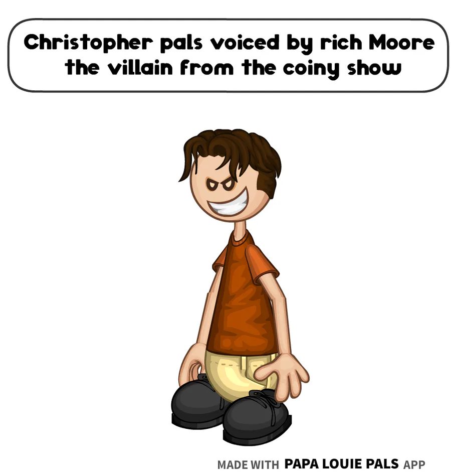 Christopher pals is voiced by rich Moore the villain from the coiny show