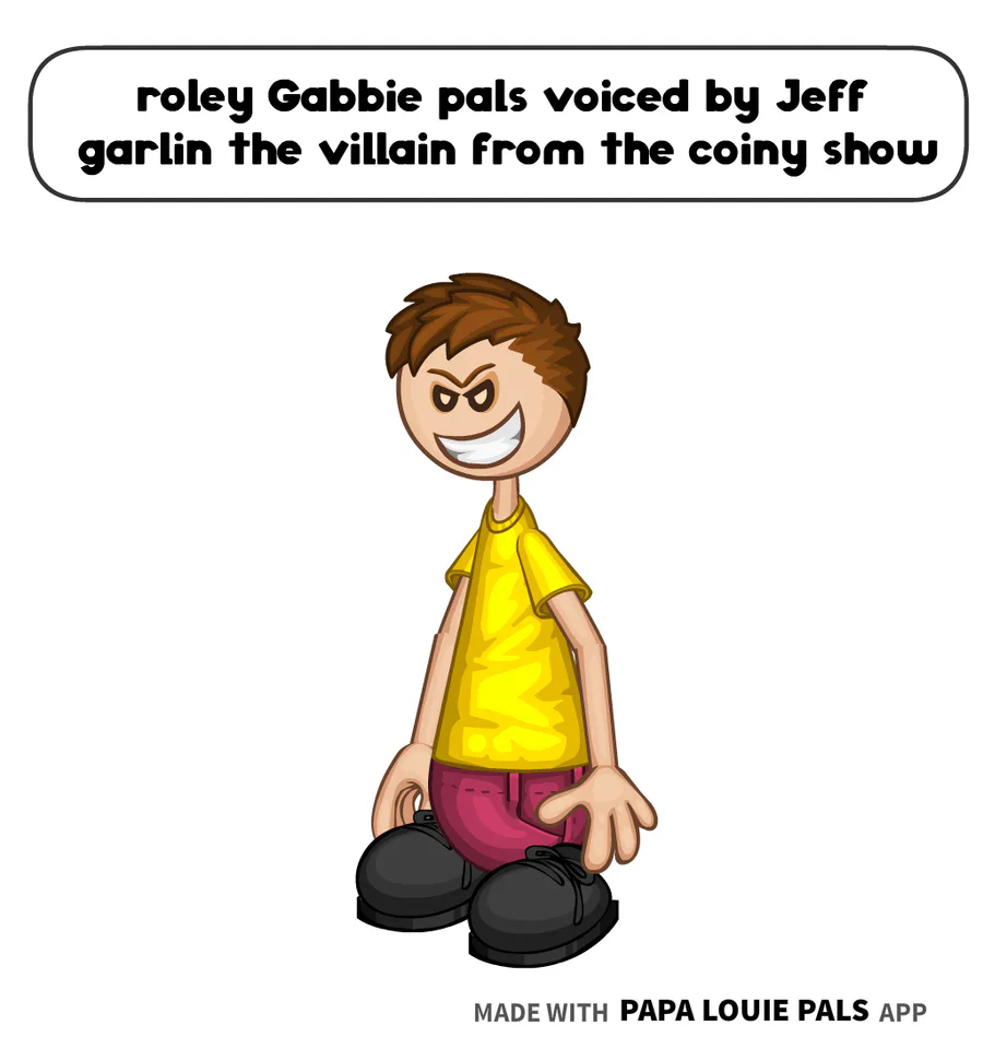 roley Gabbie pals is voiced by Jeff garlin the villain from the coiny show