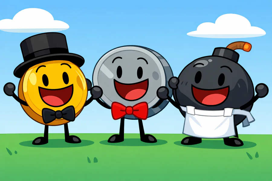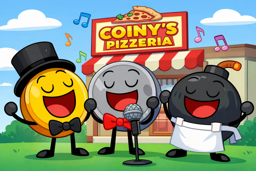 coiny nickel and bomby are singing coiny’s pizzeria