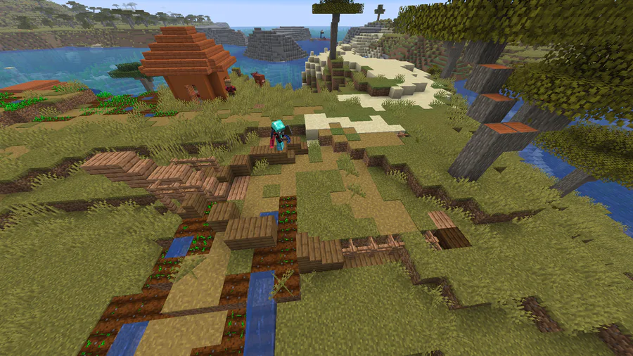 It's covered in pathway blocks and even a wheat farm.
